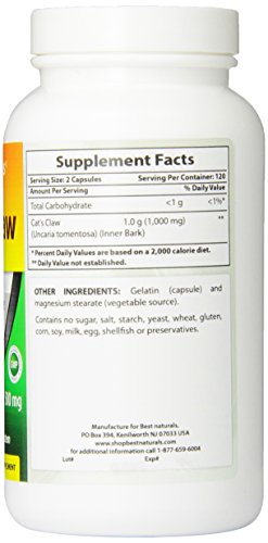 Best Naturals Cat's Claw Capsule, 500 mg, 240 Count