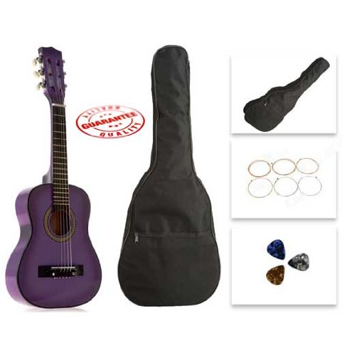 Studio : Sky Blue Telemarketing Inc. Publisher : Sky Blue Telemarketing Inc. Binding : Electronics Product Description This Kids Acoustic Toy Guitar 31 inches (1/4 size) is a unique introduction to playing for the aspiring young musician. It is a functional Acoustic Guitar, which is great for pretend to play. It offers not only great sound and playability, but an affordable price which is attractive to many first-time players seeking a beginner guitar. This Guitar is 31 inches in length and features a hardwood body, lindenwood binding, steel strings and 17 frets. Please note that this Guitar does NOT come tuned. To tune the Guitar, we recommend tightening the tuning knobs using a guitar tuner. This 31 inches Acoustic Guitar makes a great gift for kids and is a great value for the money. This guitar is everything your child needs to get started playing, includes Guitar Gig Bag, Strings Guitar Set Picks. 0