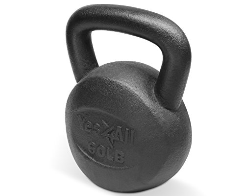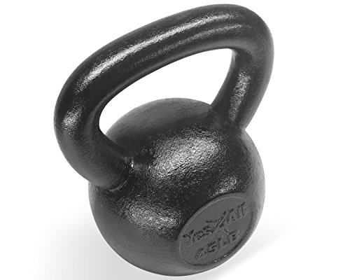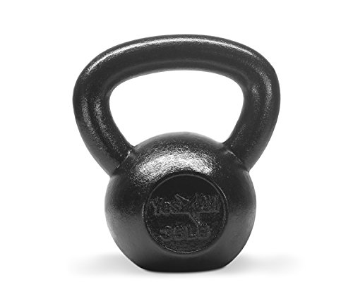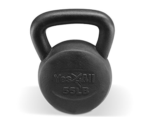 Yes4All Solid Cast Iron Kettlebell 5, 10, 15, 20, 25, 30, 35, 40, 45, 50, 55, 60 lb, Classic Black, 15 lb