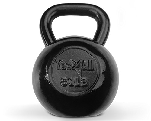 Yes4All Solid Cast Iron Kettlebell for Full Body Workout, Weight Loss and Strength Training (Black - 80 lbs)