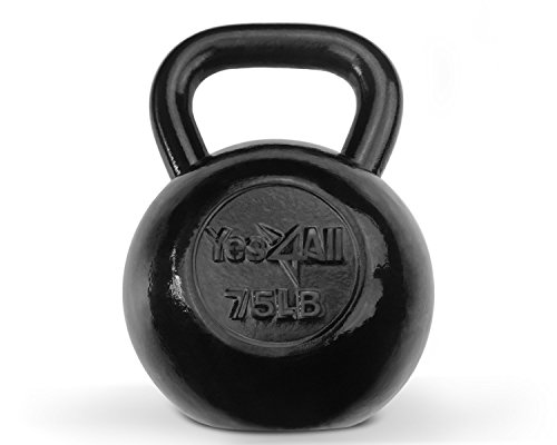 Yes4All Solid Cast Iron Kettlebell for Full Body Workout, Weight Loss and Strength Training (Black - 75 lbs)