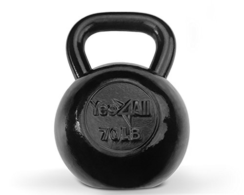 Yes4All Solid Cast Iron Kettlebell for Full Body Workout, Weight Loss and Strength Training (Black - 70 lbs)