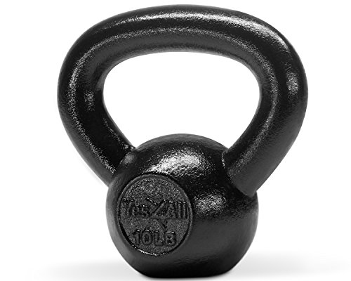 Yes4All Solid Cast Iron Kettlebell 5, 10, 15, 20, 25, 30, 35, 40, 45, 50, 55, 60 lb, Classic Black, 10 lb