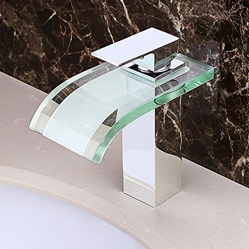 JinYuZe Solid Brass Glass Spout Waterfall Bathroom Vanity Sink Faucet, Chrome