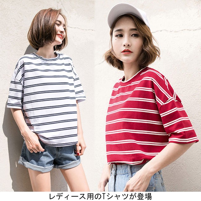 | 商品名 | レディース 五分丈袖Tシャツ 体型カバー ボーダー柄 マリンセーラー ドロップショルダー 女性用 半袖 カットソー ゆったり スクール風 夏物 |