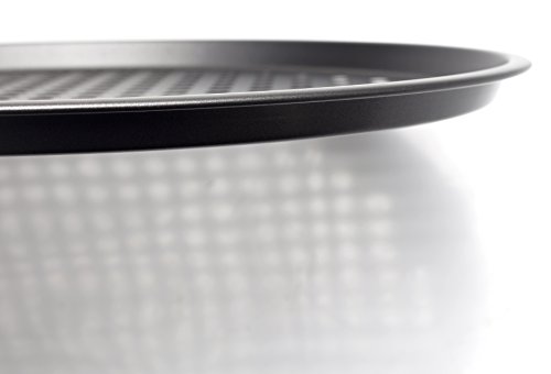 Studio : KAIYEE Publisher : KAIYEE Product Description Nonstick Bakeware 13-Inch Pizza Pan for making your own pizzas. This Pizza Pans is the best pizza pan for a crispy crust. From the principal differ in food processors, comes a superior line of bakeware. It is perforated for great crust quality and turnout every time.Constructed with carbon steel, it heats up evenly.Both the exterior and interior is non-stick, so pizzas slide off easily. In the bottom of this pizza pan, you will never experience stuck on pizza pieces that're difficult to remove. Clean up of this pan is a total snap.The coating on this pizza pan is designed to last for a very long time.13-inch pizza pan each with perforated surface Heavy Gauge (1.0 mm) Steel Construction Nonstick exterior and interior thick moved edges dishwasher safe. 0