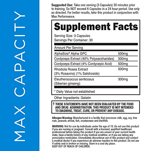 Max CapacityMax Capacity was designed to enhance mental focus and ventilatory/lactate threshold through a number of different mechanisms. Max Capacity contains cordyceps, one of the few components know to raise lactate threshold and increase mitochondrial ATP output.