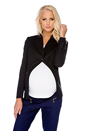 Maternity navy suit jacket cut a'la smoking, tailored fitted. Fastened with a big button, two front pockets with decorative slats