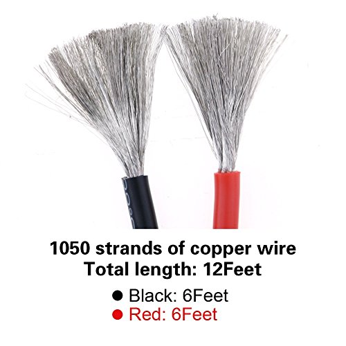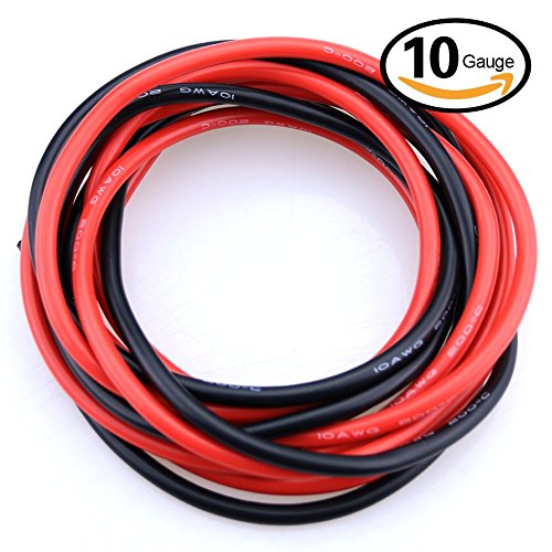 Glarks 10 Gauge (AWG) Silicone Wire 12Feet (6ft Black / 6ft Red) Super Soft Flexible Silicone Wire