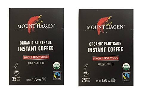 -. Feature : Fair Trade. New LOOK !. / Organic and Kosher certified,Made from 100% highland Arabica coffee beans / 2 Box of Mount Hagen REGULAR Organic Freeze Dried Instant Coffee, 1.76-Ounce / Each box contains 25 Single Serve Packets , total of 50 SS packets / Perfect for quick and easy summer coffee coolers; skip the brewin' and chillin'