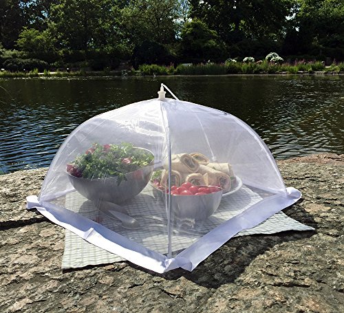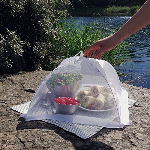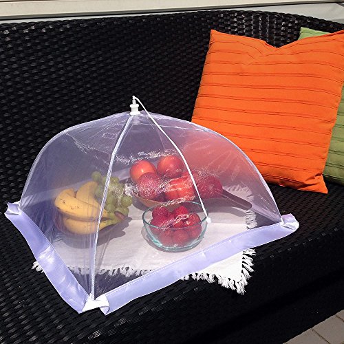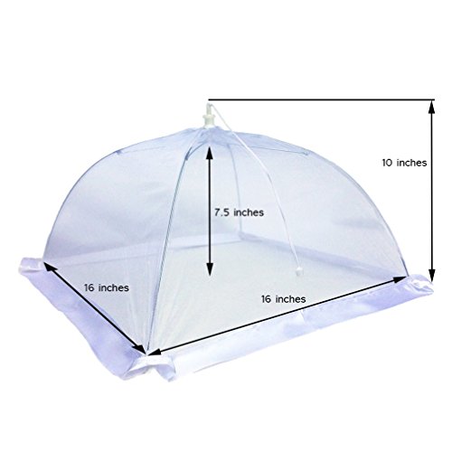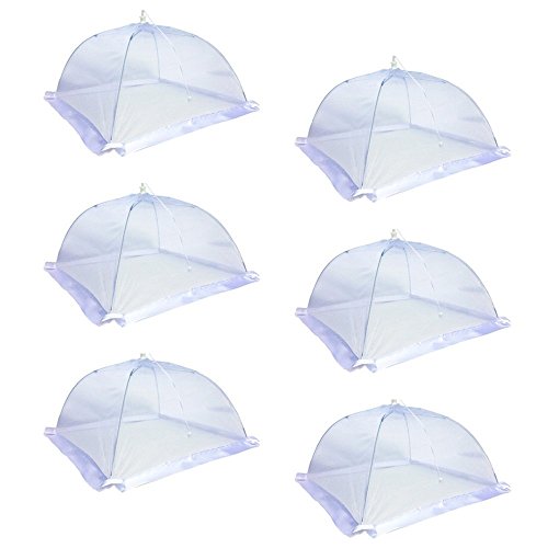 The Next Generation in Outdoor Food Covers Have you ordered a set of food cover tents only to be disappointed by a loose frame or porous netting that lets in all kinds of undesirables? Have you been searching for pop up mesh screen food covers that are actually built with high-quality material that will withstand the test of time and the elements? Are you ready to try outdoor food covers that can fit a substantial amount of food and drink - or even some baby plants? Protect Your Next Backyard or Beachfront Barbeque with This Set of Six Premium Organza Food Covers! Give yourself and your family peace of mind at your next outdoor feast with these food tents that keep the good stuff in and the bad stuff out. Organza: That's the term for the extra-thick netting we use to ensure that no flies or other winged menaces can penetrate the top of your mesh screen food cover. Sturdy Wire Frame: Each 16 x 16 x 10 inches tent is held together by a steel frame that's easy to manipulate but won't easily fall over. Between The Cracks: One complaint we saw with other products had to do with lace between the frame and the ground or surface that failed to keep gnats or other nasties from crawling into your food. That's why we use a wide satin ribbon to securely plug that gap and keep your tent clear. Open and Shut: We took care to make sure that these tents will easily open and collapse similar to an umbrella. A Breeze To Wash: After use, just hand-wash each tent and let it air dry; it will be ready for another event in no time. 30-Day Guarantee: If these don't stack up, just let us know within 30 days for a prompt refund or replacement. Super-Cool Gift: You can give these high-quality outdoor food covers as gifts without worrying if they'll really do the trick. Your friends and family will thank you for the ingenious addition to their barbeque kit! Order a Set or Two Today! 0