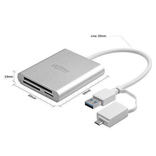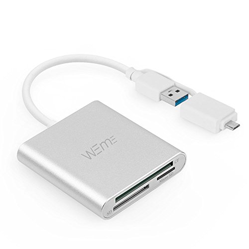 WEme Superspeed Aluminum USB 3.0 Multi-In-1 Card Reader With OTG Adapter Converter for CF/ SD/ TF Micro SD and Android Smartphone Samsung Galaxy Note, Nexus, HTC LG & Tablet, Sliver B00GQPVVCY