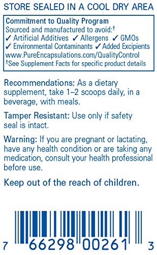 FREE FROM: Pure Encapsulations products are free from wheat, gluten, egg, peanuts, magnesium stearate, hydrogenated fat, artificial sweeteners and colors, and other unnecessary excipients. Any product containing ingredients derived from allergens, such as soy, dairy or shellfish is clearly labeled. * These statements have not been evaluated by the Food and Drug Administration. This product is not intended to diagnose, treat, cure, or prevent any disease.