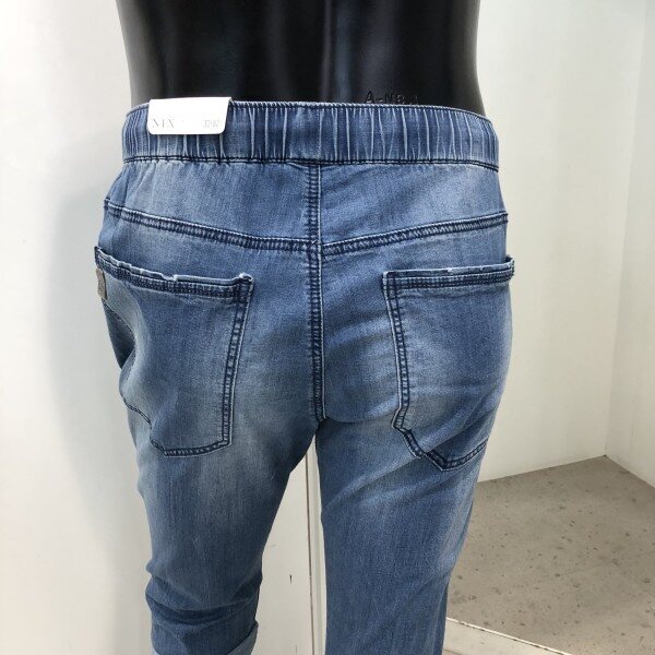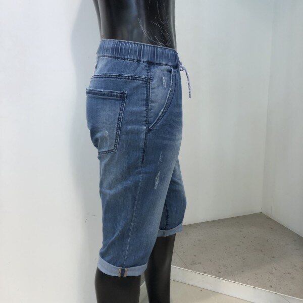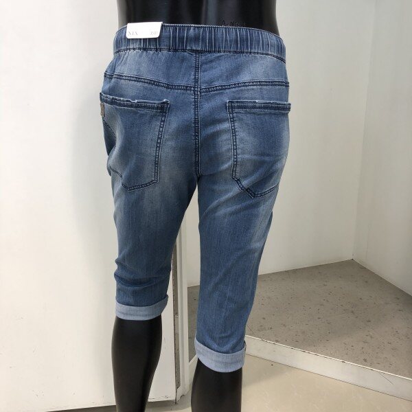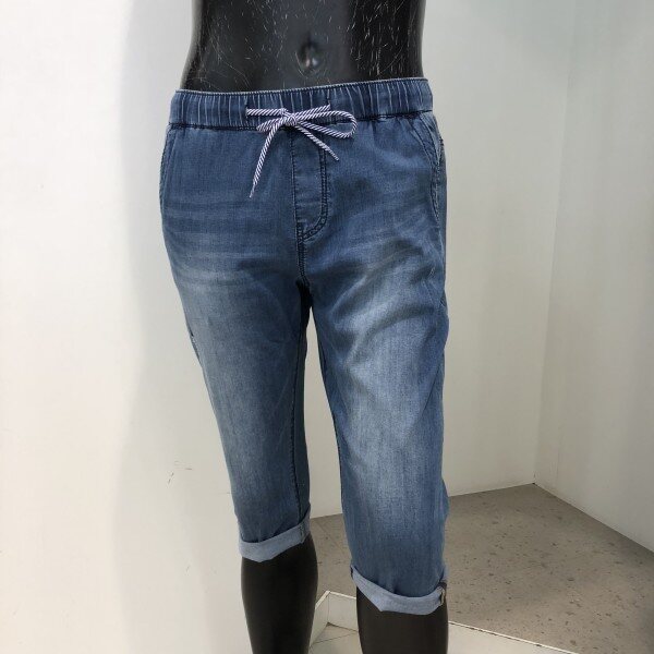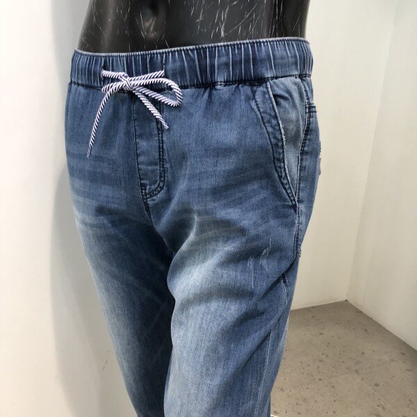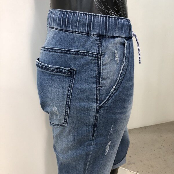 미디움의 블루톤의 저온스 7부 배기 데님입니다. 전체 밴딩에 스트링으로 착용감이 편하며 기본 캣브러쉬에 시와와 디스트로이드를 가마하녀 워싱감을 살린 제품입니다.