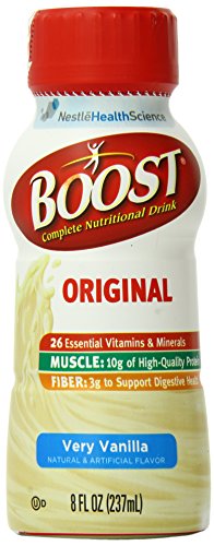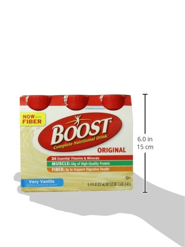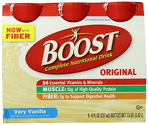 -. Binding : Health and Beauty -. Brand : Boost -. EAN : 0041679674666 -. Feature : Pack of six, 8 ounce (Total of 48 ounce) / Enjoy this great-tasting nutritional supplement as a mini meal or between-meal snack / With 26 vitamins and minerals, and 10 g of high-quality protein, boost original drink provides the kind of nutrition you need to help you be your best / Taste delicious -. Label : Boost -. Manufacturer : Boost -. NumberOfItems : 6 -. PackageQuantity : 6 -. ProductGroup : Health and Beauty -. ProductTypeName : HEALTH_PERSONAL_CARE -. Publisher : Boost -. ReleaseDate : 2013-07-18 -. Studio : Boost -. Title : Boost Complete Nutritional Drink, Very Vanilla (Pack of 6) -. UPC : 041679674666