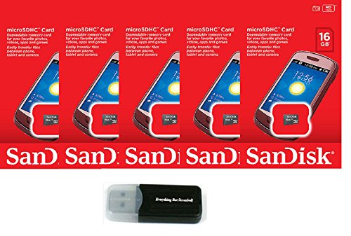 SanDisk 16GB (5 Pack) MicroSD HC Memory Card SDSDQAB-016G (Retail Packaging) LOT OF 5 with Everything But Stromboli Memory Card Reader