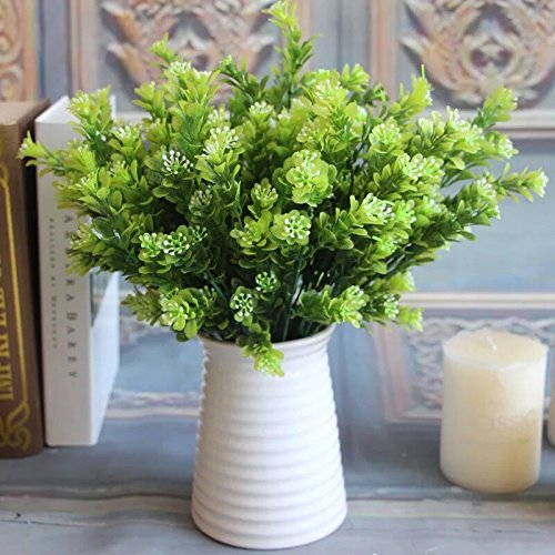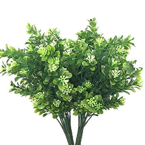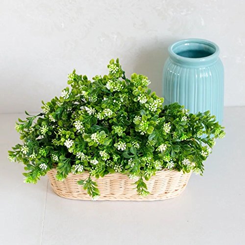Artificial Shrubs, Htmeing 4pcs Faux Plastic Eucalyptus Leaves Bushes Fake Simulation Greenery Plants Indoor Outside Home Garden Office Verandah Wedding Decor (white)