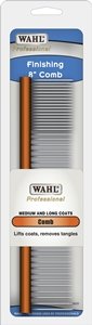 Wahl's 8 inch professional finishing comb is the perfect tool for grooming pets with medium to long length coat types. The metal finishing comb is perfect for use after brushing; use the comb to go back through the coat to check for any knots or tangles. For a pet or coat type that may have a lot of matting or tangles, the 8 inch metal finishing comb is easy and effective to use with specially designed chrome teeth that make it easier to work through matts and tangles without pulling or losing some of the hair.