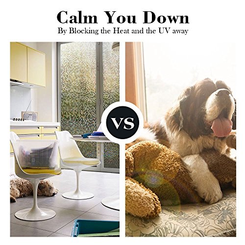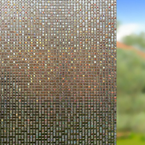 Rabbitgoo 3D Non-Adhesive Window Film Decorative Mosaic Film Privacy Glass Film Protector for Window / Table Covers, 17.7in. By 78.7in. (45x200CM), Brown