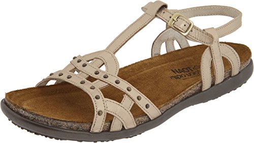 Get the look of the moment with the Naot Elinor. The rich leather upper of this women's gladiator sandal features mini-stud accents and a T-strap design for gladiator-inspired style. An adjustable strap with buckle closure lends a personalized fit. The contoured cork and latex footbed molds to the shape of the foot for superior comfort, while this Naot Elinor sandal rests atop a durable synthetic outsole for long-lasting wear and reliable traction. This summer will sizzle with the stylishly strappy Naot Elinor.Feature