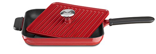 Enjoy crispy, hot sandwiches or Panini's with this Grill and Panini Press. Cast iron warms evenly, searing food with attractive grill marks while giving the press enough weight to ensure maximum contact between food and the cooking surface. Preheat the press in the pan to cook food on both sides at once. Silicone grips are included for comfortable handling.Feature