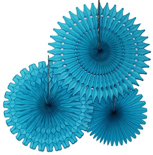 [Product Information]- Beautiful set of three turquoise honeycomb tissue paper party fans - one 13 inch fan, one 18 inch fan, and one 21 inch fan