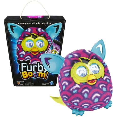 -. Binding : Toy -. Brand : Furby -. EAN : 0082676998102 -. Feature : Collect and hatch virtual Furblings to fill your city in the Furby Boom app, and try to get the golden Furblings egg / You can hatch and raise virtual Furblings with your Furby Boom, and play games together using the free Furby Boom app / Give Your Furby Boom a Name and Furby Boom will remember the name you give it and the names of other Furby Boom friends it meets / Requires 4 "AA" alkaline batteries (Not Included) / For age 6 and up -. Label : Hasbro -. Manufacturer : Hasbro -. ProductGroup : Toy -. ProductTypeName : TOYS_AND_GAMES -. Publisher : Hasbro -. Size : 5 inches -. Studio : Hasbro -. Title : Hasbro Year 2013 Furby Boom Series 5 Inch Tall Electronic App Plush Toy Figure - Purple, Pink and White Scale Pattern FURBY -. UPC : 082676998102