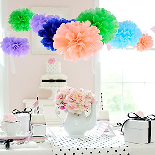 Since ® 12PCS Mint Gray Pink Party Tissue Pompoms Paper Flower Pom Poms Wedding Birthday Party Girls Room Decoration SIC-01713