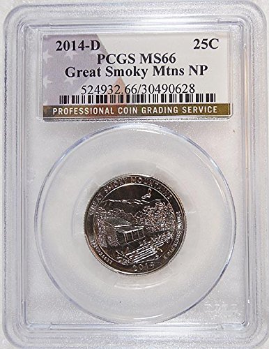 2014 D 25c Great Smoky Mountains NP Quarter PCGS MS 66 Flag Label Holder