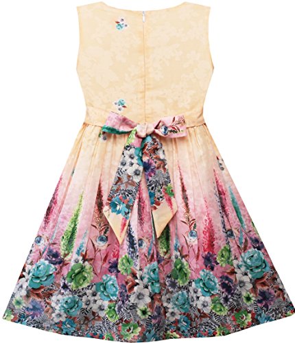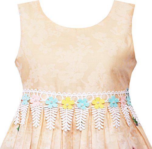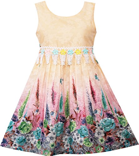 Design girls everyday dress. Flower garden print with lace trim waist design. Zipper back. Machine wash. Following size means age ranges for girls, They are for general guidance only. For most accurate fit, we recommend checking detailed measurement before purchase.