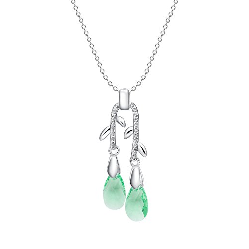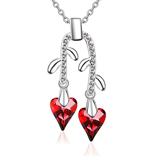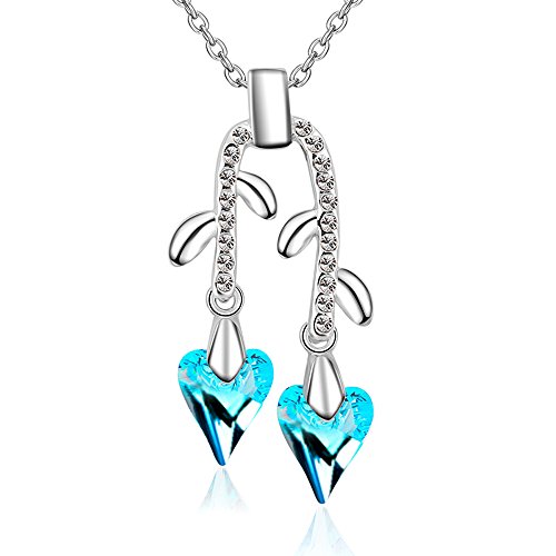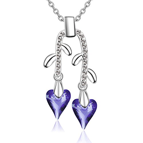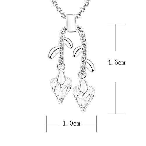 -. Title : St.Ushine Long Tassel Flower Branch Style Heart Crystal Pendant Necklaces Silver Chain for Women Girl