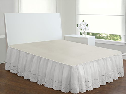 Eyelet Ruffled Bedskirt – Ruffled Bedding with Gathered Styling –14” Drop, Queen, White