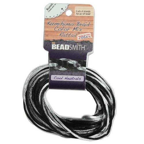 1 X 2mm Satin Rattail Braiding Cord Cool Neutrals 12 Yards For Kumihimo and Craft