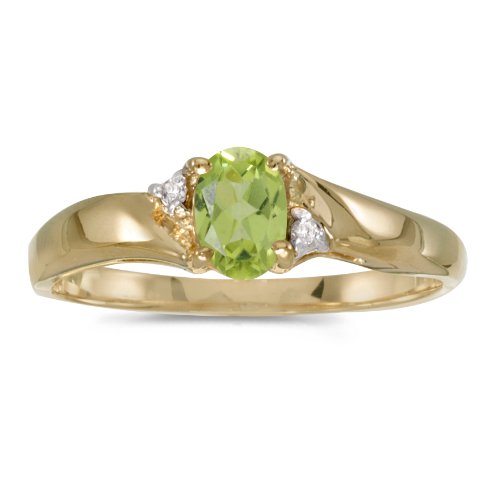 -. Title : 10k Yellow Gold Oval Peridot And Diamond Ring