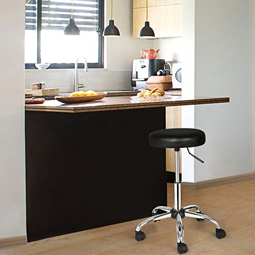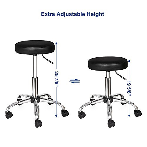 -. Feature : CONVENIENCE: This Songmics stool features a complete 360 degree rotation that gives you ease of access no matter where the seat is placed. And five casters provide easy movement and extra stability / ADJUSTABLE HEIGHT: A lever below the seat is used for adjusting the height from 46-58 cm with a gas lift mechanism / COMFORTABLE: The circular seat is finished in soft, high-quality faux leather, ensuring it's both comfortable and durable / MULTIFUNCTIONAL: This low stool is perfect for commercial use in beauty salon, SPA or clinic, while it also can be used home or in office / EASY ASSEMBLE AND CLEAN: With high quality PU fabric, easy to clean and also equipped with installation tools