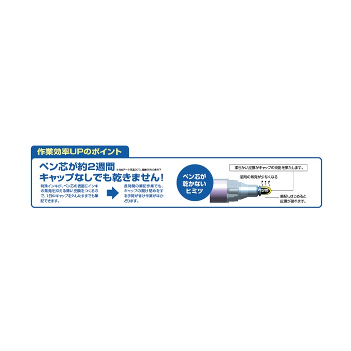 1(닛츄우)일중 캡을 뺀 채로 그렇지만 OK!작업이 잘 진척되는 유성 마커 3개의 포인트 펜 심이 약2주간 캡 없이도 마르 오지 않습니다.특수 잉크의 채용으로,펜 심의 표면에 잉크의 증발을 억제하는 얇은 피막 를 할 수 있습니다.