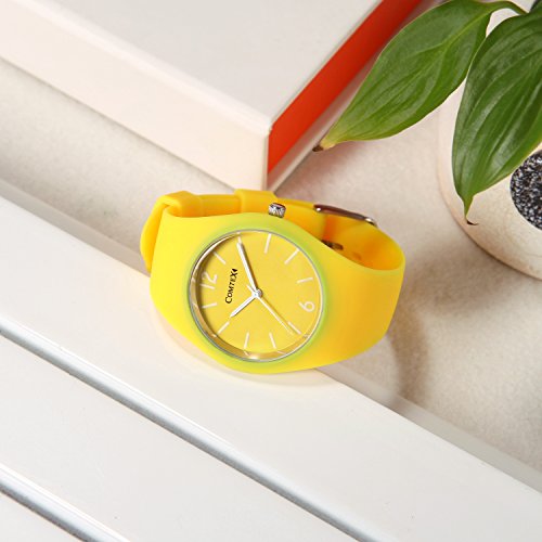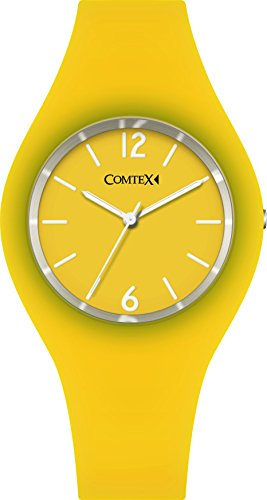 Comtex 손목시계 맨즈 레이디스 옐로우 실리콘 야광 아날로그 쿼츠 컬러풀 워치 시계 빅 페이스