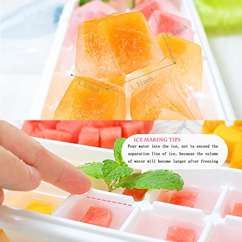 - Value Pack:Our ice trays contains set of 3 non spill ice cube trays with removable cover creating a total of 36 ice cubes,12 Ice cubes from each tray,the ice cube size:1.5" x 1.5" x 1.2"
