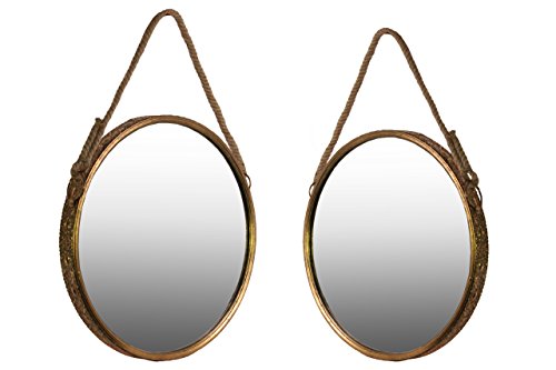 Urban Trends Metal Wall Mirror with Rope Handle (Set of 2), Antique Gold Foil