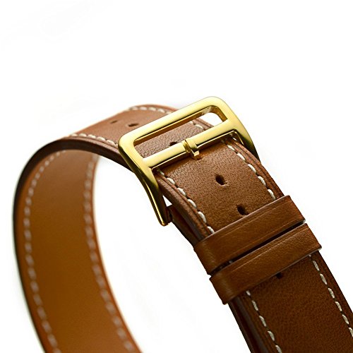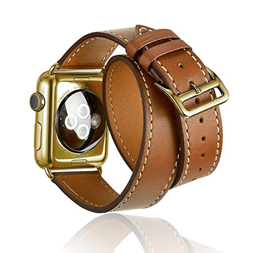 -. Title : AWSTECH 38mm Luxury Genuine Leather Extra-Long Double Tour Band Strap Bracelet Replacement Watch Band With Adapter Clasp for for Apple Watch Series 1 Series 2 Brown