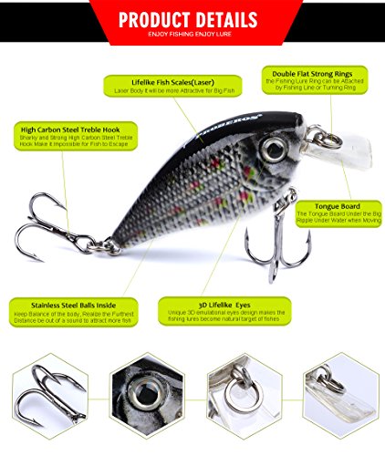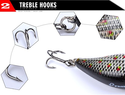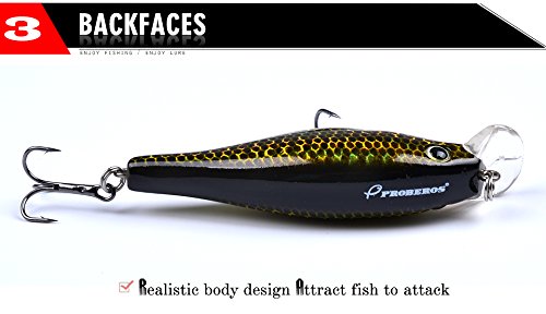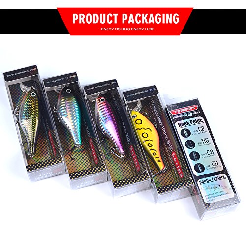 -. Feature : GREAT MUST-HAVE ITEM FOR ANGLERS - Widely Targeting At Predator Fishes Such As Catfish, Perch, Bass, Redfish, Trout, Bream, Muskie,Roach, Walleye etc For Both Freshwater and Saltwater. Well-packed And Gift-wrap available - Perfect Gifts For Birthday, Anniversary, Thanksgiving, Christmas etc. / WELL-DESIGNED AND WELL-MADE - 3D Life like Fish Eyes With Fish-Attracting Laser P.R.Inted Body Provides Excellent Appearance Of Fishing Lures. While Double Flat Strong Rings And Carbon Steel Treble Hooks Offers Continuous Metal Flash and Special Vibration To Attract Fishes. Stainless Steel BBs Inside Lures' Chamber To Keep Balance and Casting Long. / ECO-FRIENDLY MATERIAL - With High Performance ABS Material, Which Offers Odor-free and Reusable Fishing Lures, Proberos Fishing Lures Are Unmatched in QUALITY and DURABILITY. / MULTI-COLOR AVAILABLE - Gives You Option Of Fishing In Any Water Area Or For Different Targets. / ***THE MOST IMPORTANT THING*** - Wish You Good Luck In Your Fishing Trip! GOD BLESS YOU! Proberos promise we 100% Stand Behind Our Products.