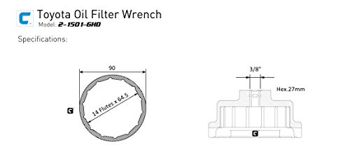 - The 14-flute 64mm OEM spec'ed oil filter wrench is designed for Toyota/Lexus with 2.5 to 5.7 liter engines