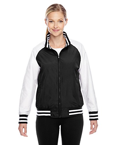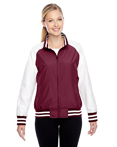 Binding : Apparel Product Description 2.8 oz., abrasion-resistant 100% nylon taslan shell with polyurethane coating for enhanced wind- and water-resistance; 3.2 oz., 100% polyester dyed-to-match tricot big hole mesh lining in body; 100% polyester white taffeta lining in sleeves; striped 3½" 1x1 rib knit trim at bottom hem, cuffs and inside collar; EZEM zipper at inside side seam and inside left-chest for easy decoration access; center front dyed-to-match old school molded plastic zipper; molded plastic zippers at front welt pockets; 0