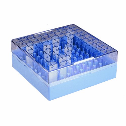 Nalgene 5026-0909 Polycarbonate CryoBox Vial Rack, 133mm Length x 133mm Width x 52mm Height, 9 x 9 Array, 81 Place (Pack of 4)