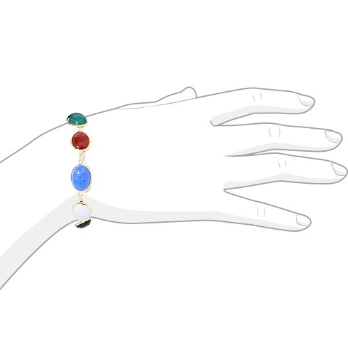 -. Title : 14k Yellow Gold Scarab Gemstone Bracelet with Oval Cabochons 8"