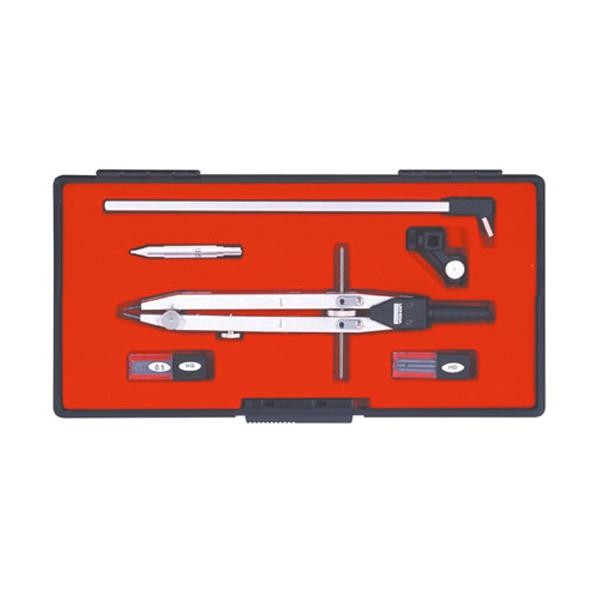 1本の穂替コンパスで大円から小円まで描ける製図器セット。