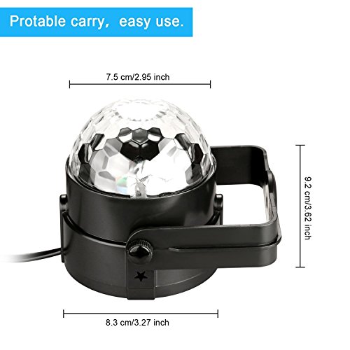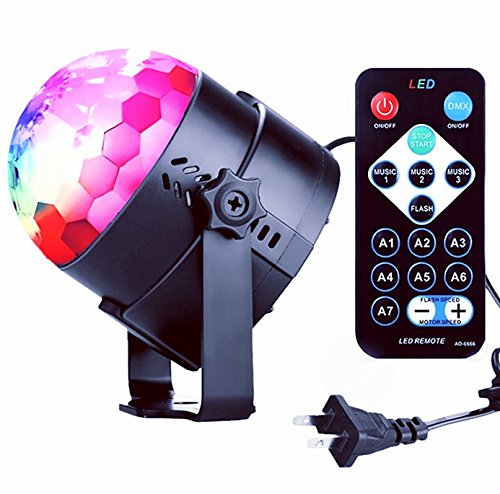 RGB 7 COLORS with REMOTE and AUTO/FLASH/MUSIC MODE: 7 Colors (3 single color and 4 color combinations)disco ball party lights with remote control to change the color and speed.Notice:Please do not look directly on this light specially on flash mode.