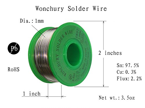 Lead Free Solder Wire 3.5oz with Rosin Core for Electrical Soldering, Sn97.5 Cu0.3 Flux2.2 1.0mm