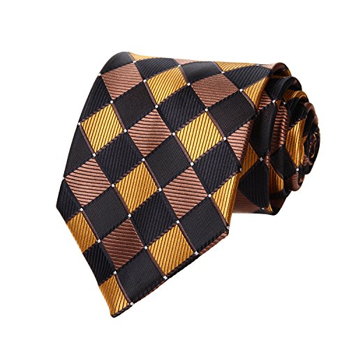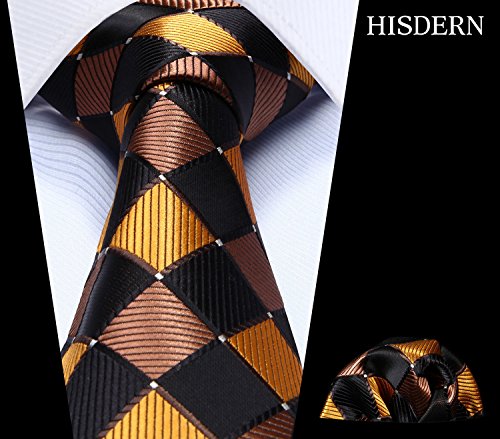 Hisdern HISDERN Herren Krawatte Taschentuch Check Krawatte & Einstecktuch Set Braun & Orange
