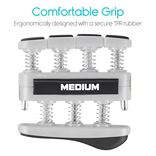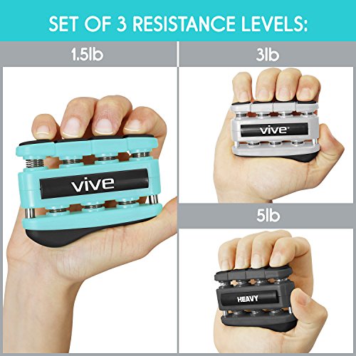 Hand Strengthener by Vive Strengthen your grip with this portable hand strengthener from Vive. Isolate each finger for targeted workouts or combine them to increase your overall strength. Perfect for musicians: pianists and string players, including guitarist. For use in rehabilitation following carpal tunnel surgery, hand or wrist injuries or use it to increase mobility in arthritis sufferers. Care: Clean with a dry cloth only. Do not allow springs to become wet. Product Features: - Build Strength, designed to increase the strength of fingers, wrists and forearms